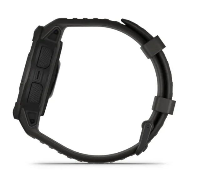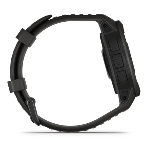 Garmin's Instinct Standard Edition is a GPS smartwatch made with chemically strengthened glass, silicone band, Polymer bezel and case. Features built-in sports apps; smart notifications; 28 days of battery life in smartwatch mode; understand your body better with 24/7 health monitoring and stay on track with more satellites. This rugged watch is water-rated to 100 meters and is thermal and shock resistant. Plus, with a fiber-reinforced polymer case and chemically strengthened, scratch-resistant Corning Gorilla Glass, this device is built to endure.