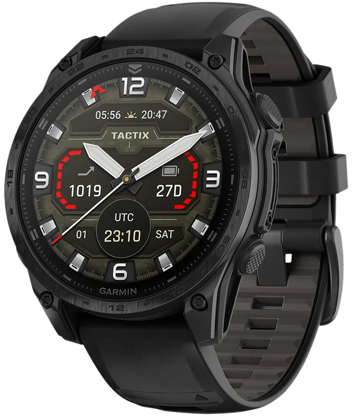Rise above with tactix 8. Its the ultimate tactical smartwatch, featuring a stunning AMOLED display, titanium bezel, sapphire lens, an internal speaker and mic for voice features and a 40-meter dive rating.
