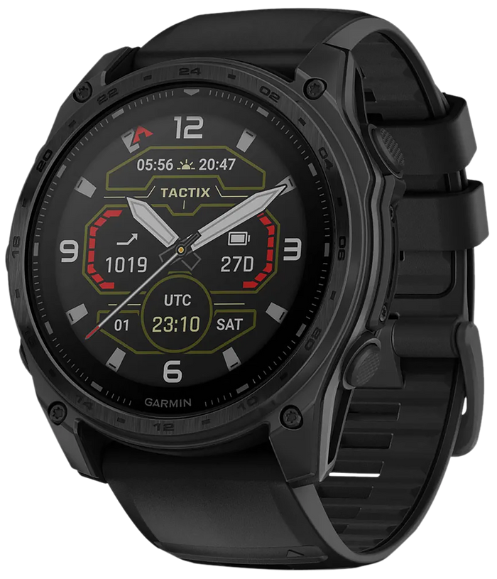 Rise above with tactix 8. Its the ultimate tactical smartwatch, featuring a stunning AMOLED display, titanium bezel, sapphire lens, an internal speaker and mic for voice features and a 40-meter dive rating.
