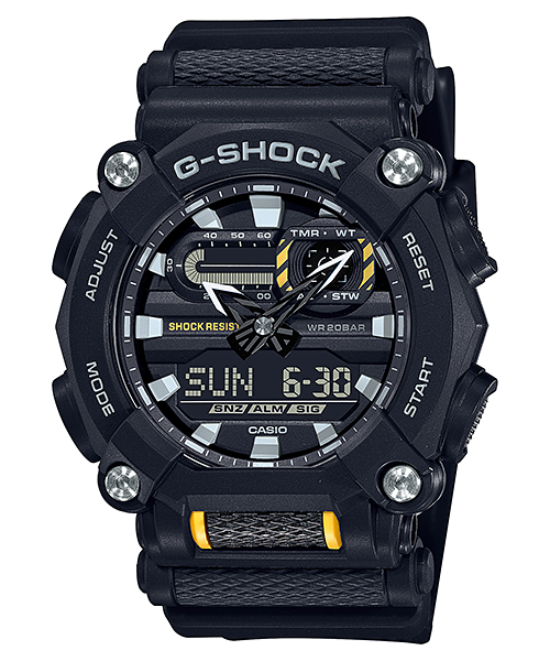 From G-SHOCK, the toughness watches that are ever evolving in an endless pursuit of strength, this heavy-duty model can be used in tough environments as well as for street fashion. The nut-like 10-sided bezel is fastened with screws to express the industrial design motif, and is finished in a rugged, tough, and straightforward design. Additionally, the lug ends of the band and all the function buttons, including the front button, are engraved with non-slip checkering for excellent operability.