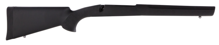 Hogue Stocks come standard with aluminum pillar bedding. These pillars, inserted at critical action mounting bolt locations, guarantee an accurate, rock-solid action fit that will not shoot loose. The OverMolded stock features a sleek straight comb, palm swells and a varminter style forend which is treated with a unique cobblestone texture. Hunters especially will be attracted to the incredible quietness of these stocks coupled with lightweight, superior non-slip comfort and accuracy. This model has a black finish and is compatible with Winchester 70 long action with sporter barrel.