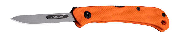 Hogue 35834 Expel 2.50" Folding Scalpel Plain Satin High Carbon Steel Blade, Blaze Orange Textured G10 Scales/SS Handle