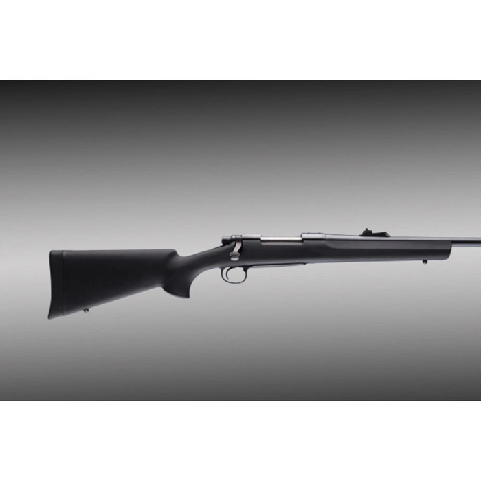 Hogue Stocks come standard with aluminum pillar bedding. These pillars, inserted at critical action mounting bolt locations, guarantee an accurate, rock-solid action fit that will not shoot loose. The OverMolded stock features a sleek straight comb, palm swells and a varminter style forend which is treated with a unique cobblestone texture. Hunters especially will be attracted to the incredible quietness of these stocks coupled with lightweight, superior non-slip comfort and accuracy. This model has a black finish and is compatible with Remington 700 BDL long action with standard barrel.