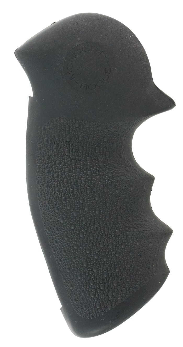 Hogue rubber grips are molded from durable synthetic rubber that is not spongy or tacky, yet provides a soft recoil absorbing feel without affecting accuracy. The flexibility of the materials and molding process produces rubber grips with features that out perform all other makes. It is molded with a reinforcing insert directly engaging with the firearm frame for a rock-solid grip-to-frame fit. The Cobblestone texture provides an efficient non-slip, non-irritating stippling pattern. This Monogrip model has an black finish and is compatible with Ruger Security Six.